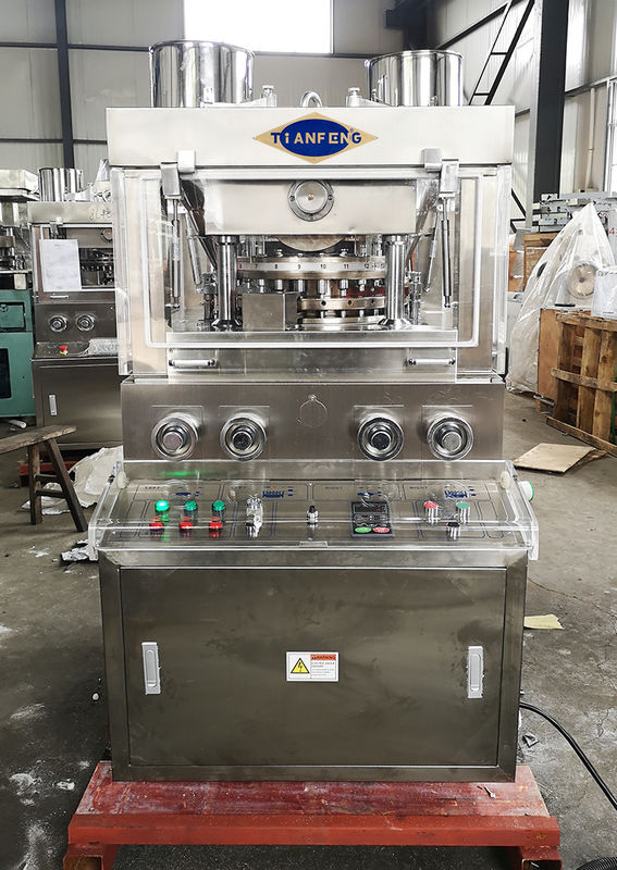 Machines de pressage de pilules pharmaceutiques La presse à comprimés rotative ZP35D/37D/41D est une presse à comprimés automatique continue à double pression pour la pressage des matières premières granulaires en comprimés de différentes formes,double couleur et lettres imprimées des deux côtésIl est principalement utilisé dans la fabrication de recettes dans l'industrie pharmaceutique, chimique, alimentaire, électronique.